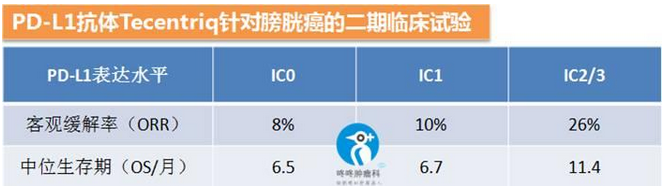 在已經(jīng)批準(zhǔn)的膀胱癌中,也顯示出來(lái)PD-L1表達(dá)量越高,有效率越高的趨勢(shì):