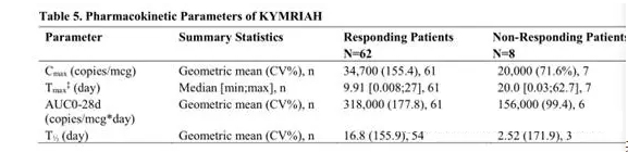 下表5總結(jié)了KYMRIAH的藥代動力學(xué)參數(shù)