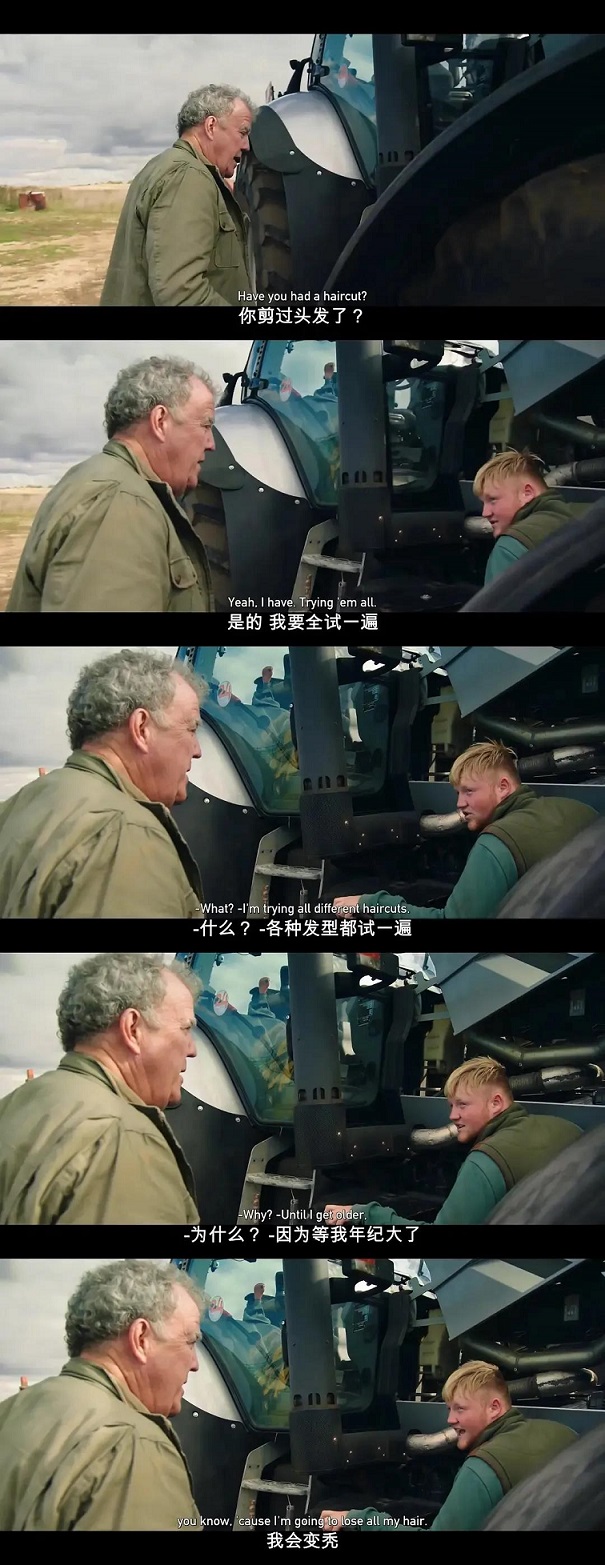 前段時間看了個紀錄片《克拉克森的農(nóng)場》,(發(fā)際線告危)的克拉克森和年輕農(nóng)夫小伙的一段對話給我笑壞了。