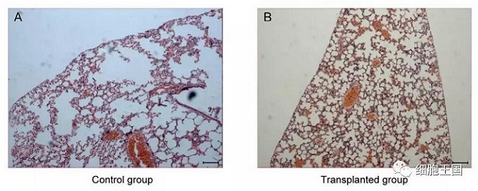 移植后對(duì)照組和移植組肺臟組織學(xué)對(duì)比