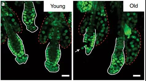 令人驚訝的是,研究者還專門分析了年輕小鼠與衰老小鼠毛囊中凋亡細胞的數(shù)量,發(fā)現(xiàn)并沒有區(qū)別。