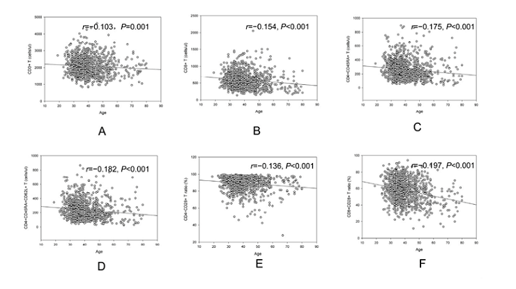 此前,北京協(xié)和醫(yī)院感染內科主任李太生等在《Aging》雜志發(fā)表文章,分析了1068名健康人外周血淋巴細胞及其亞群隨著年齡變化因素數(shù)量和比例發(fā)生的改變。
